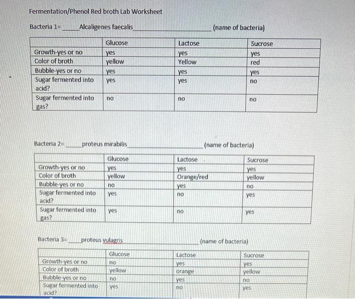 Fermentation/Phenol Red broth Lab Worksheet Bacteria Phenol Red Sugar Broth Lab Report For example, if the fermentation test is being done to test. these types of carbohydrate fermentation tubes are therefore called phenol red (sugar) broths. phenol red is commonly used as a ph indicator in carbohydrate fermentation tests. you can determine if fermentation occurred if the broth turns into the color yellow. these types of carbohydrate fermentation. Phenol Red Sugar Broth Lab Report.